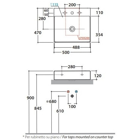 Раковина GLOBO T-EDGE подвесная или на столешницу с одним отверстием цвет белый B6R51BI